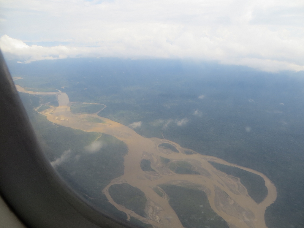 The bus journey from La Paz to Rurrenabaque takes 24 hours, as we had Phil with us and he was on a short holiday we decided to splash out and take a small propeller driven plane with a passenger load of about 30. On the way out we were delayed because they wanted to load a washing machine onto the plane but the hatch wasn't big enough. Once we eventually got started there were lots of cloud so we couldn't see much but on the return journey there was very little cloud and we passed over the jungle then the first strip of mountains in the Andes to land on the high plain in El Alto. As we came into land we came swooping over the valley giving us magnificent views over La Paz. It was a beautiful plane ride and very spectacular, showing off Bolivia's diverse terrain with great effect.