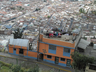Tulcan is a bit of a dump but it did provide the cheapest (and largest) room we have had in Ecuador as well as the weirdest meal we have had in Latin America. Wanting a small snack we opted for a slice of pizza each, Mine - the tropicana came with glace cherries, sultanas, ham and caramelized pineapple, Liza's Hawaiian just had the ham and caramelized pineapple. We didn't quite finish them!